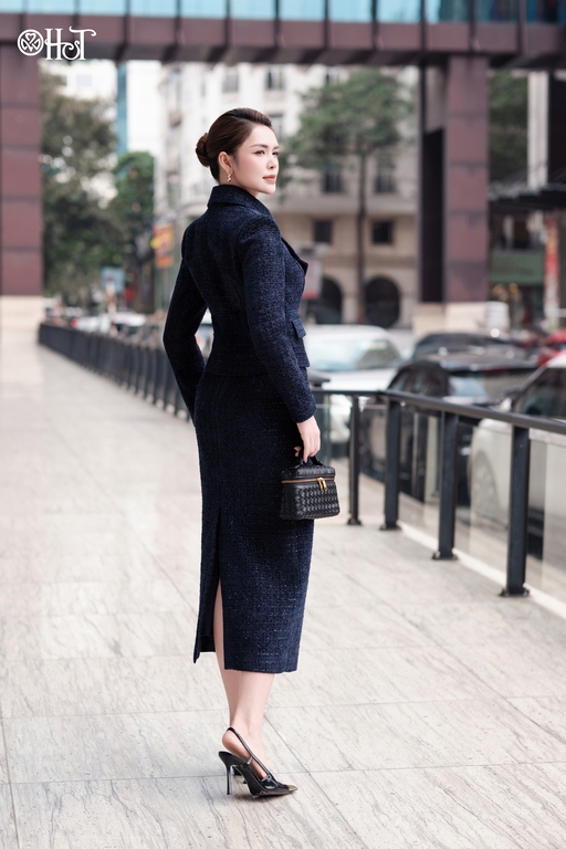 Vest tweed cổ K  xanh